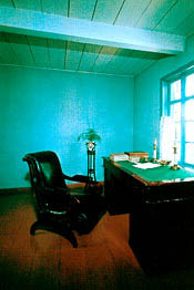 Экспозиция домика. Стол и кресло из петербургской квартиры поэта. |
