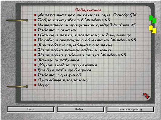 Обучение работе с Windows'95 и аппаратной части компьютера. Курс рассчитан на новичков. Вы научитесь подключать к компьютеру периферийные устройства, устанавливать платы. В курсе подробно рассматриваются работа в операционной системе Windows'95, включая настройку среды, работу со встроенными в нее программами WordPad, Painter и др.