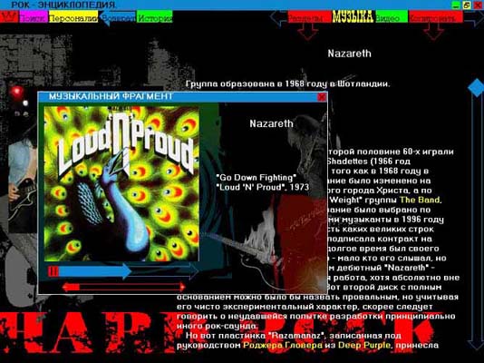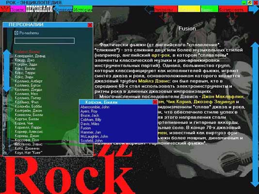 Диск "РОК-ЭНЦИКЛОПЕДИЯ", который издательство "КомпактБук" разработало совместно с музыкальным обозревателем журнала "Ровесник" Сергеем Кастальским - это не только энциклопедические статьи о зарубежной рок-музыке; иллюстрации; аудио- и видеофрагменты; обзоры альбомов последних лет; статьи о музыкальных стилях; самая полная дискография; дайджест прессы, включающий избранные статьи автора и интервью. Это - мощная система поиска (по алфавитному списку всех статей; по типам, стилям и media; по всему тексту); бессчетное количество гипертекстовых ссылок, прямой доступ ко всей media-информации; возможность копирования и вывода текстов на печать; масштабируемый интерфейс и, наконец, демонстрационная версия, раскрывающая все возможности программы.