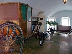 Карета XVIII в. английской работы. По преданию, была подарена императором Павлом I настоятелю Троице-Сергиевой Лавры митрополиту Платону.