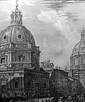 | Д.-Б. Пиранези. Листы из альбома "Виды Рима". 1748-1778 г. Вид церквей и колонны Трояна на Квиринале. 1762 г. |