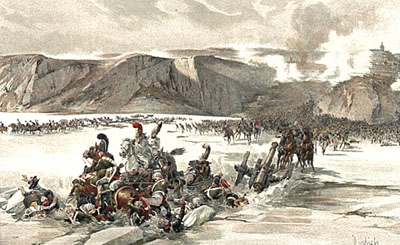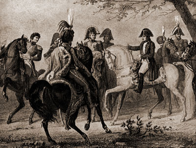 Император Франц и Александр бежали с поля битвы еще задолго до окончательной катастрофы Их свита бежала врассыпную, бросив обоих монархов по дороге, и монархи тоже убежали с поля сражения и быстро разлучились друг с другом, унесенные лошадьми в разные стороны. Короткий зимний день склонялся к вечеру, солнце, ярко светившее весь день, зашло, а Александр и Франц в темноте спасались от плена. Александр дрожал, как в лихорадке, и плакал, потеряв самообладание. Его быстрое бегство продолжалось и в следующие дни. Раненый Кутузов едва спасся от плена. Наступил вечер. Все было кончено. По широкой равнине, спотыкаясь поминутно о бесчисленные трупы людей и лошадей, проезжал Наполеон, окруженный громадной свитой, маршалами, генералами гвардии и адъютантами, приветствуемый восторженными криками солдат, отовсюду сбегавшихся к императору. Около 15 тысяч убитых русских и австрийцев, около 20 тысяч пленных, вся почти артиллерия неприятеля, а самое главное - фактическое уничтожение русско-австрийской армии, разбежавшейся на три четверти в разные стороны, бросившей весь свой колоссальный обоз, все боевые запасы, огромные массы провианта, - таковы были в общих чертах результаты этой победы. Французы потеряли меньше 9 тысяч (из 80 тысяч). На другой день во всех частях французской армии читался приказ Наполеона. «Солдаты, я доволен вами: в день Аустерлица вы осуществили все, чего я ждал от вашей храбрости. Вы украсили ваших орлов бессмертной славой. Армия в 100 тысяч человек под начальством русского и австрийского императоров меньше чем в четыре часа была разрезана и рассеяна. Те, которые ускользнули от вашего меча, потоплены в озерах...» - так начинался этот приказ. Немедленно австрийский император Франц заявил Александру, что продолжать борьбу совершенно немыслимо. Александр с этим согласился. Франц послал победителю письмо с просьбой о личном свидании. Наполеон встретился с Францем на своем бивуаке, недалеко от Аустерлица. Он принял императора Франца вежливо, но прежде всего потребовал, чтобы остатки русской армии немедленно ушли из Австрии, и сам назначил им определенные этапы. Он заявил, что переговоры о мире будет вести только с Австрией. Франц, конечно, согласился беспрекословно. Третья коалиция европейских держав окончила свое существование. В течение всей второй половины ноября и начала декабря 1805 г. Вильям Питт с большим волнением ждал известий о генеральном сражении. Глава английского правительства, создатель и вдохновитель третьей коалиции против Наполеона знал, что теперь Англия надолго обеспечена от нашествия: еще 21 октября 1805 г. в морской битве при Трафальгаре адмирал Нельсон напал на соединенный франко-испанский флот и уничтожил его, сам пав во время битвы. Отныне у Наполеона не было флота. Но Вильям Питт боялся другого. Он понимал, как понимала это и вся торговая и промышленная буржуазия Англии, что дело этим не кончится, что Наполеон держит прямой курс на полное изгнание английских купцов с торговых рынков тех стран Европы, которые прямо или косвенно попадут под его власть. Мало того, располагая богатейшими странами континента, портами и верфями, Наполеон имеет все средства выстроить новый флот и воссоздать Булонский лагерь. Катастрофа Мака в Ульме, въезд Наполеона в Вену, захват моста французами и похожее на бегство отступление Ку