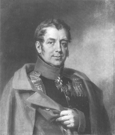 Изображен в общегенеральском кавалерийском вицмундире образца 1814 г. и шинели. На левой стороне груди звезда ордена Св.Владимира 2-й ст. и серебряная медаль участника Отечественной войны 1812 г.; на шее кресты орденов Св.Георгия 3-го кл., Св.Анны 2-й ст. с алмазами и крест ордена Св.Владимира 2-й ст.