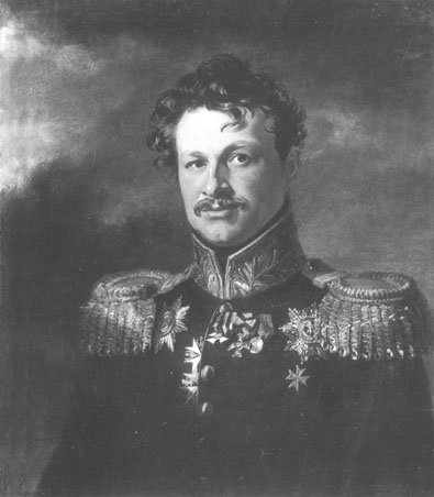 Изображен в общегенеральском вицмундире образца 1817 г. На правой стороне груди звезда ордена Св.Анны 1-й ст., а на левой – кресты орденов Св.Георгия 4-го кл. и Св.Владимира 4-й ст. с бантом, серебряная медаль участника Отечественной войны 1812 г., а также звезда гессен-кассельского ордена Золотого Льва и шитая звезда прусского ордена Св.Иоанна Иерусалимского. Из-под борта выступают кресты прусского ордена Св.Иоанна Иерусалимского и гессен-кассельского ордена За военные заслуги.