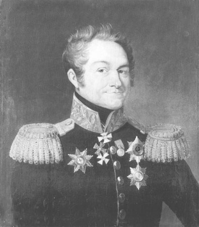 Изображен в общегенеральском мундире образца 1817 г. На правой стороне груди звезда ордена Св.Анны 1-й ст. с алмазами, а на левой – серебряная медаль участника Отечественной войны 1812 г., звезды ордена Св.Владимира 2-й ст. и прусского ордена Красного Орла 1-й ст. На шее крест ордена Св.Георгия 3-го кл., из-под борта выступают кресты ордена Св.Владимира 2-й ст. и прусского ордена Красного Орла 1-й ст.