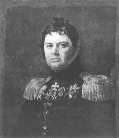 Изображен в генеральском артиллерийском вицмундире образца 1820 г. На правой стороне груди звезда ордена Св.Анны 1-й ст. с алмазами, а на левой – крест баварского Военного ордена Максимилиана Иосифа 3-й ст., серебряная медаль участника Отечественной войны 1812 г., бронзовая дворянская медаль в память Отечественной войны 1812 г. и звезда ордена Св.Владимира 2-й ст. На шее крест ордена Св.Георгия 3-го кл., из-под борта выступают кресты австрийского ордена Леопольда 2-й ст. и ордена Св.Владимира 2-й ст.