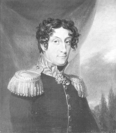 Изображен в общегенеральском мундире образца 1817 г., который он носить не мог, т.к. умер в 1815 г. На левой стороне груди серебряная медаль участника Отечественной войны 1812 г., на шее кресты орденов Св.Анны 2-й ст. с алмазами и Св.Владимира 3-й ст.