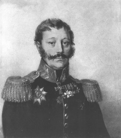 Изображен в общегенеральском мундире образца 1817 г. На правой стороне груди звезда ордена Св.Анны 1-й ст., а на левой – крест ордена Св.Георгия 4-го кл., серебряная медаль участника Отечественной войны 1812 г., золотой крест за Прейсиш-Эйлау, бронзовая дворянская медаль в память Отечественной войны 1812 г., крест и шитая звезда ордена Св.Иоанна Иерусалимского. На шее крест ордена Св.Владимира 3-й ст., из-под борта выступает крест прусского ордена Пур ле Мерит.