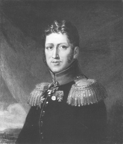 Изображен в общегенеральском вицмундире образца 1817 г. На правой стороне груди звезда ордена Св.Анны 1-й ст., а на левой – серебряная медаль участника Отечественной войны 1812 г. и крест австрийского ордена Леопольда 3-й ст. На шее кресты ордена Св.Владимира 3-й ст. и прусского ордена Красного Орла 2-й ст.
