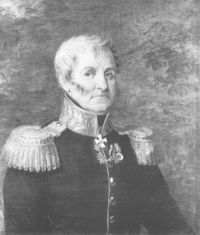 Изображен в общегенеральском мундире образца 1817 г., который он носить не мог, т.к. в 1816 г. был уволен в отставку и носил мундир старого образца. На левой стороне груди крест ордена Св.Владимира 4-й ст. и серебряная медаль участника Отечественной войны 1812 г. На шее кресты орденов Св.Георгия 3-го кл. и Св.Анны 2-й ст., из-под борта выступает крест прусского ордена Пур ле Мерит.