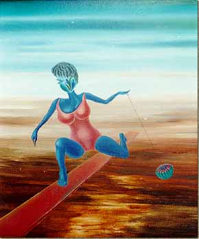 Девушка с раскидаем, Girl with a ball-on-a-string Картон, масло, 26 ( 30 см 1984