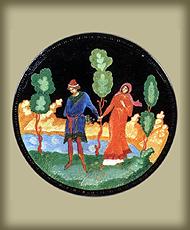 митрий Михайлович Турин (1899 - 1945)- мастер композиции, миниатюры на литературные сюжеты: "Граф Нулин", "Женитьба Павла" (по мотивам поэзии Кольцова).