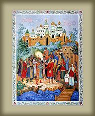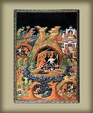 ергей Иванович Хазов (1883 - 1936) также был ранее иконописцем. Он приехал в Палех из Москвы и поступил в Артель. Миниатюра "Поход Ермака" (1935) напоминает "орнаментальную рябь" на иконах костромских иконописцев конца XVII - начала XVIII века.