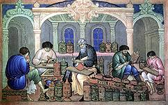 Самая известная работа палехских мастеров - роспись Грановитой палаты Московского Кремля, выполненная в 1880 - 1882 годах семьей Белоусовых.Василий и Иван Белоусовы - крестьяне из Палеха за роспись были удостоены золотых медалей.