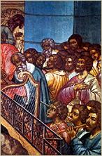 Интерьер Крестовоздвиженского храма |  "Жертвоприношение царя Соломона" фрагмент алтарной фрески |