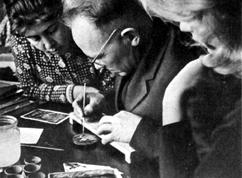 Работают золотом как акварелью. Аналогично приготавливается аллюминий, в настоящее время его используют вместо серебра. После росписи золото полируется зубом животного - волка, собаки, коровы. Затем живопись покрывается лаком в несколько слоев с последующей просушкой. Последний процесс обработки лаковой поверхности - полировка - более часа ее полируют ладонью руки, смоченной в воде.