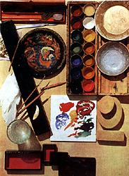 сновы стиля и технологии изготовления палехской лаковой миниатюры сложились уже в первое десятилетие существования "Артели древней живописи". Новое искусство унаследовало многие традиции иконописания - условность изображения, тонкость и плавность линий, своеобразные формы архитектуры, пейзажа, орнамента, темперные краски, использование твореного золота, техники "плавей".