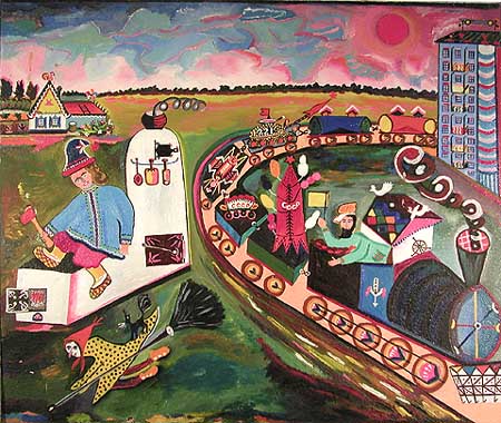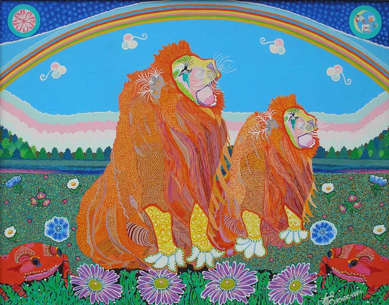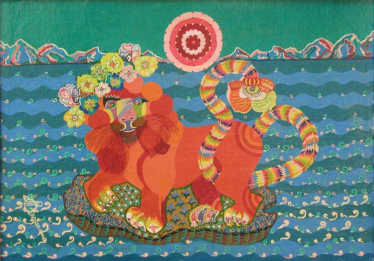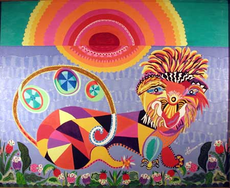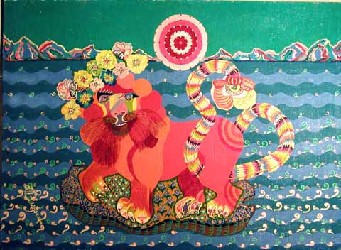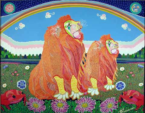 Еленок Татьяна Дмитриевна 1930 г.р. Москва Смеющиеся львы. 1994 Холст, смешанная техника. 80х100 |