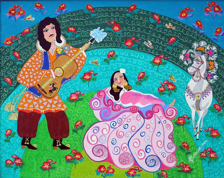 Еленок Татьяна Дмитриевна 1930 г.р. Москва Танцующие цыгане. 1994 Холст, смешанная техника. 81х101 |