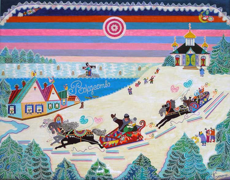 Еленок Татьяна Дмитриевна 1930 г.р. Москва Рождество. 1992 Холст, смешанная техника. 80х100 |