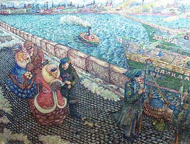 Иванов Геннадий Леонидович 1940 г.р. Москва «Невельские перед кругосветным путешествием», 2002 Бум., тушь, перо. 42х30 |