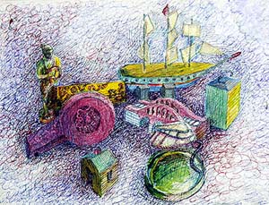 Иванов Геннадий Леонидович 1940гр. Москва Из серии «Маленький мир». 1996 Бум., см. техн. 30х42 Собрание ГРДНТ |