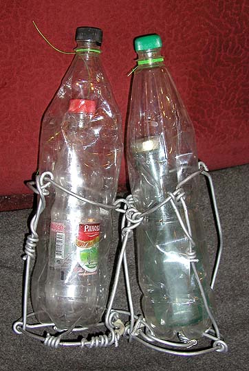 Иванов Геннадий Леонидович 1940гр Москва Контейнер для перевозки рыбок зимой (Правда дома рыбы все равно) Пластиковые бутылки 4шт. Ал. проволока. |