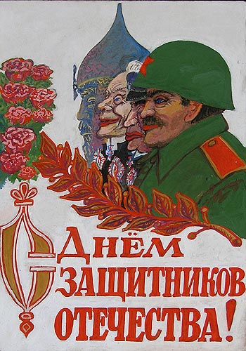 Иванов Геннадий Леонидович 1940гр Москва С днем защиника Отечества. (А.Невский, А.Суворов, матро, солдат) Оргалит, смешанная техника. |
