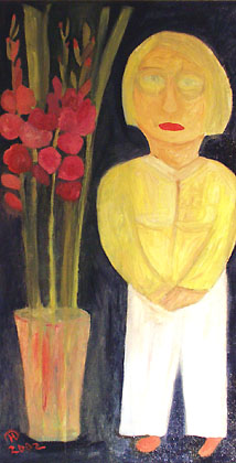 Никольская Светлана Николаевна 1939 г.р. Москва «Автопортрет с подаренными гладиолусами», 2002 Х., м. 70х50 |