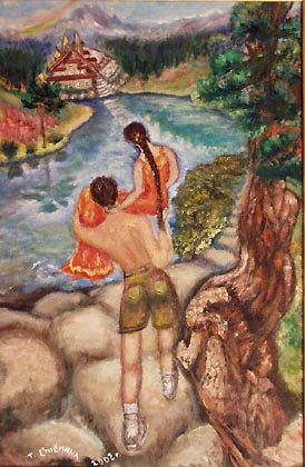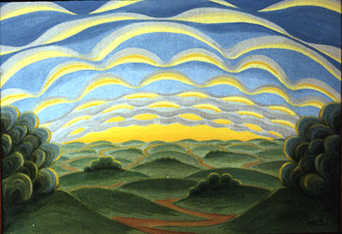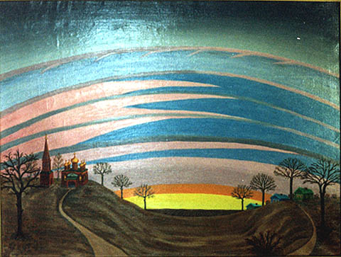 Сичинава Людмила Николаевна. 1935 г.р. Ярославль Там, за облаками. 1995 Х., м. 60х80 Собственность автора |
