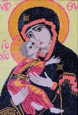 Сутурина Анна Ивановна Екатеринбург Икона ''Богоматерь Владимирская''. 1998 Мулине, вышивка крестом. 34 х 24 |