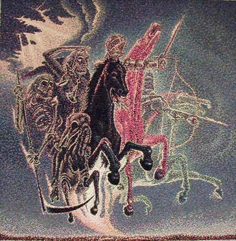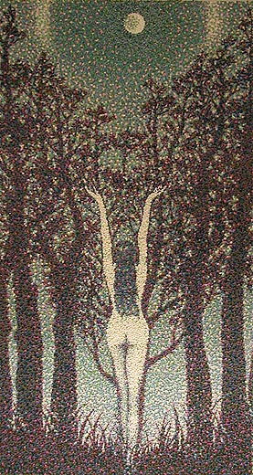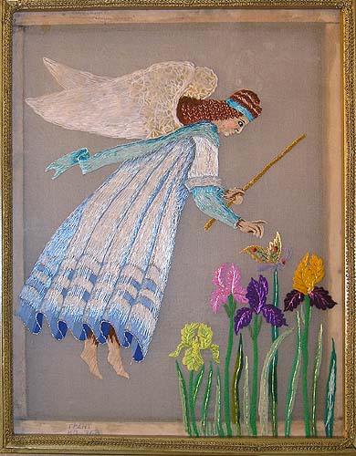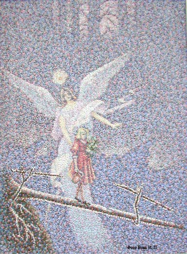 Семейкина А. П. Пермь Ангел – хранитель флоры. 1997 Газ, шелк. и шерст. нитки, мохер, мулине, ручн. вышивка. 59х48 |