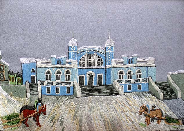 Семейкина А. П. Пермь Старый вокзал в городе Пермь. 1998 Ручная вышивка. 35х50 |