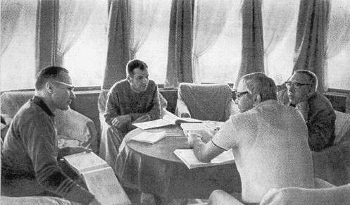 Репетиция на теплоходе "Дунай" во время съемок кинофильма "Они сражались за Родину"